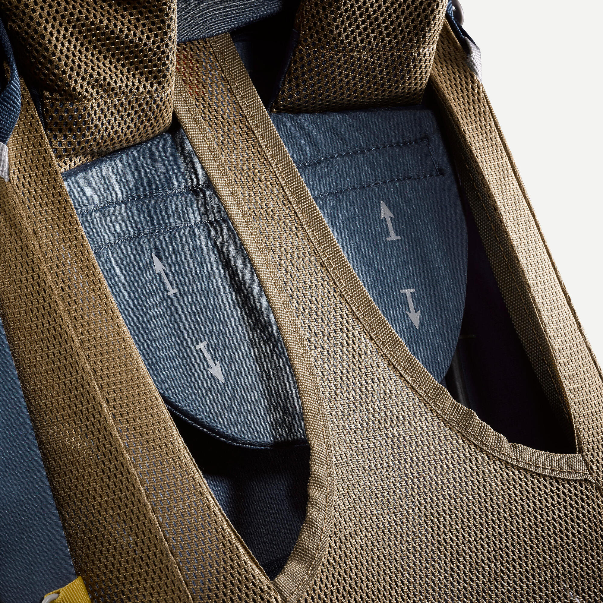 The AIR concept: in order for your back to dry faster. we added a mesh on top of a ventilated structure. Ideal for long and sweaty day hikes from one camp to another !