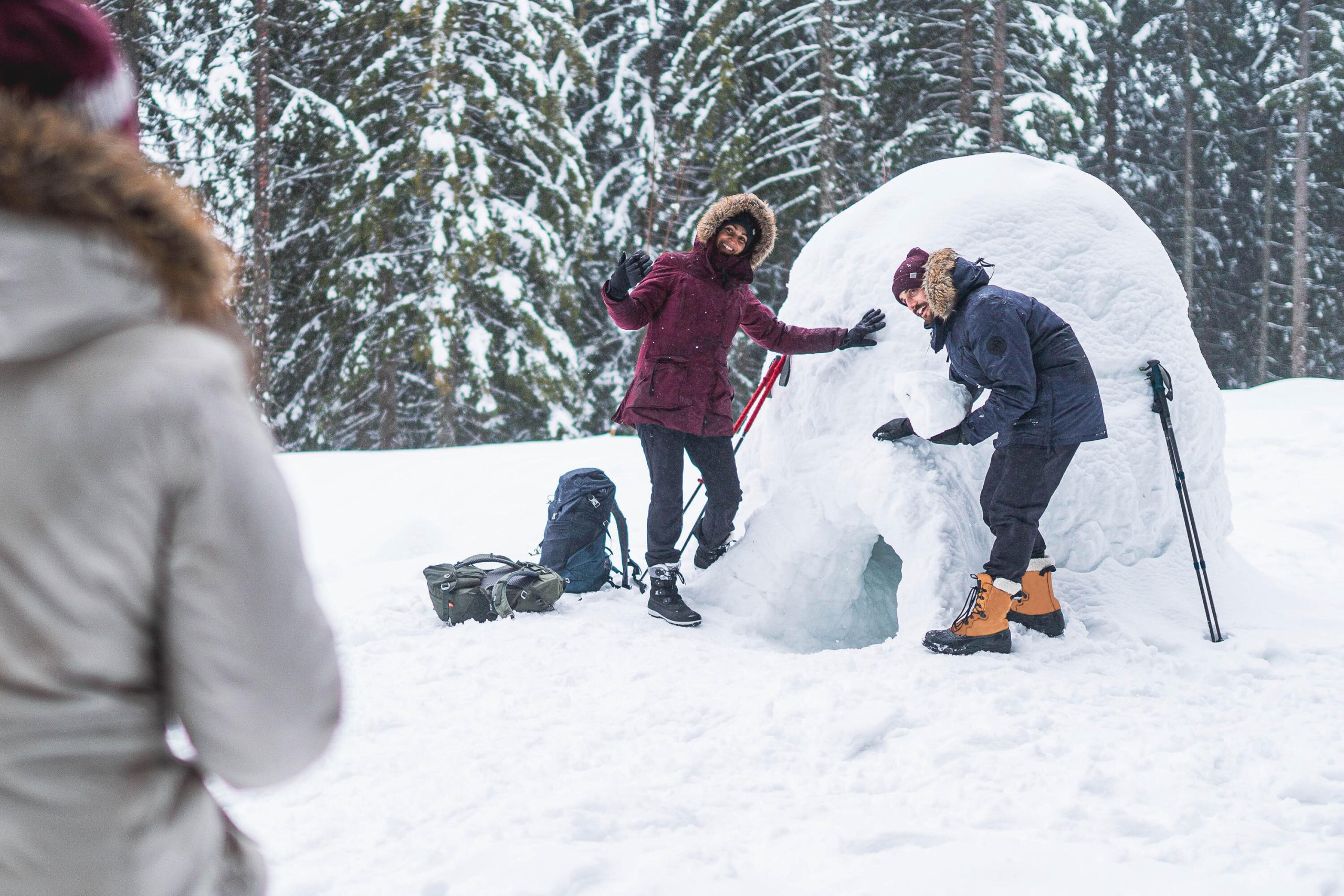 These softshell pants are built for cold-weather hikes. offering warmth. protection. and freedom of movement in snowy. windy conditions.