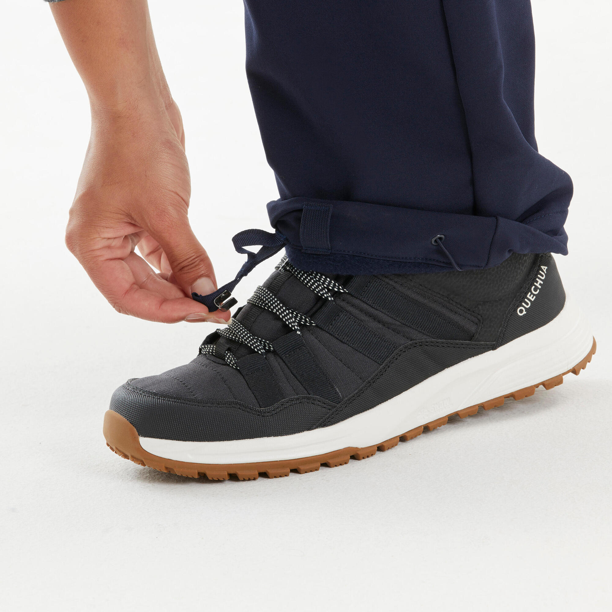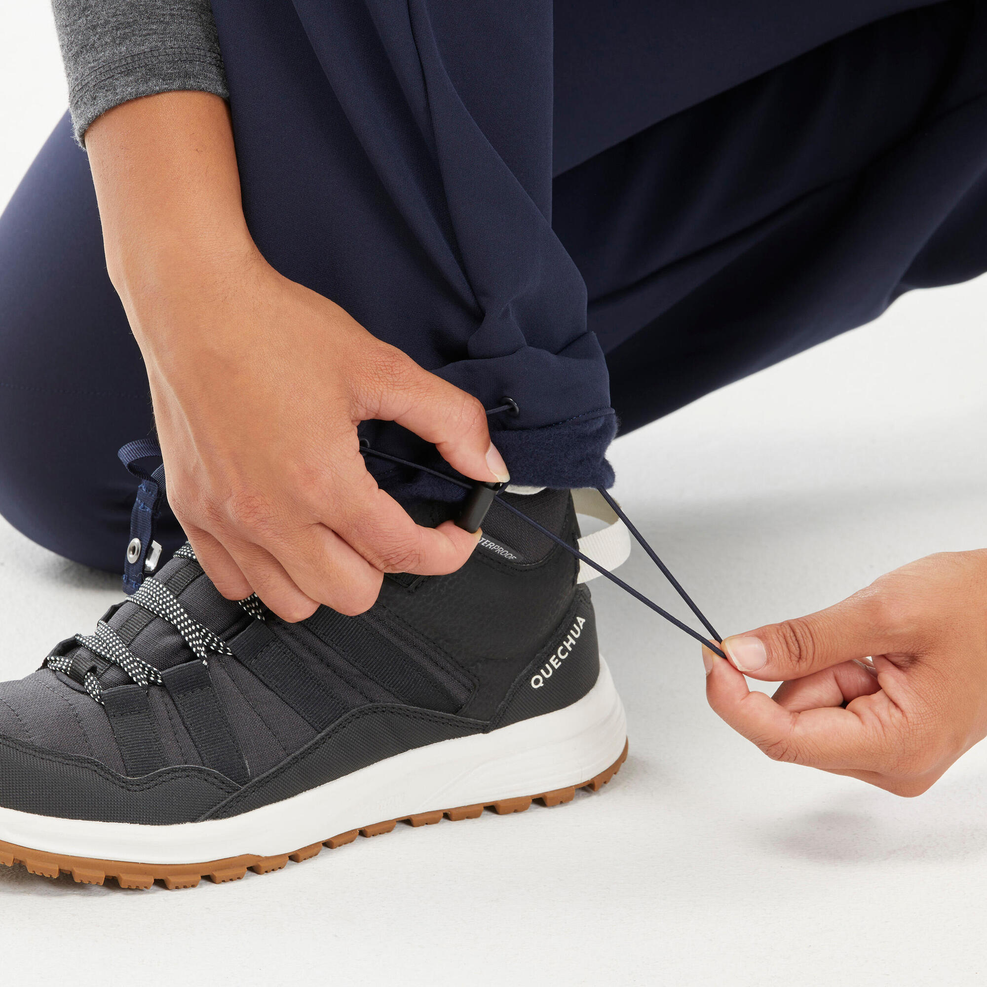 Snow protection: Elastic cuffs with hooks prevent snow from entering your boots.