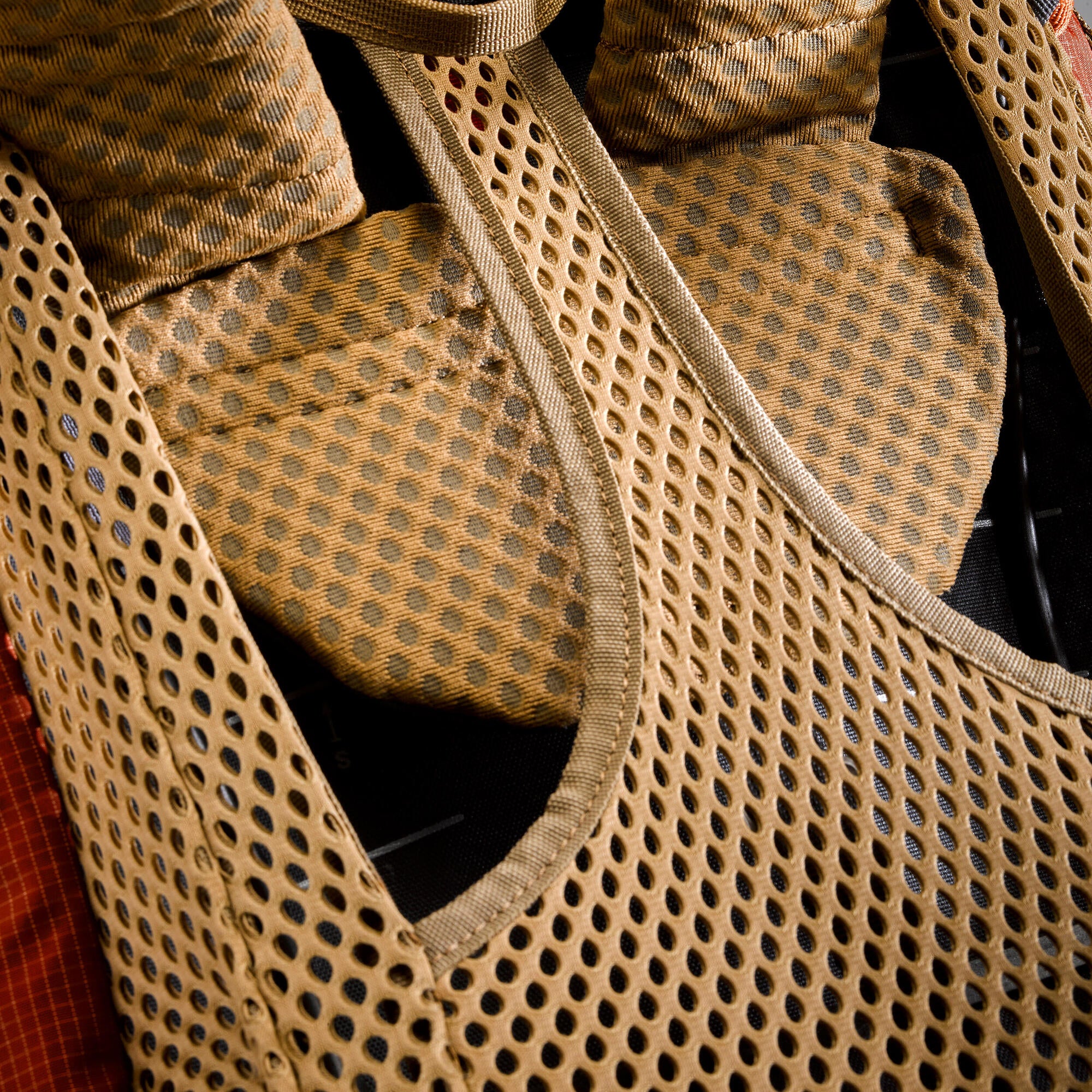 The AIR concept: in order for your back to dry faster. we added a mesh on top of a ventilated structure. Ideal for long and sweaty day hikes from one camp to another!