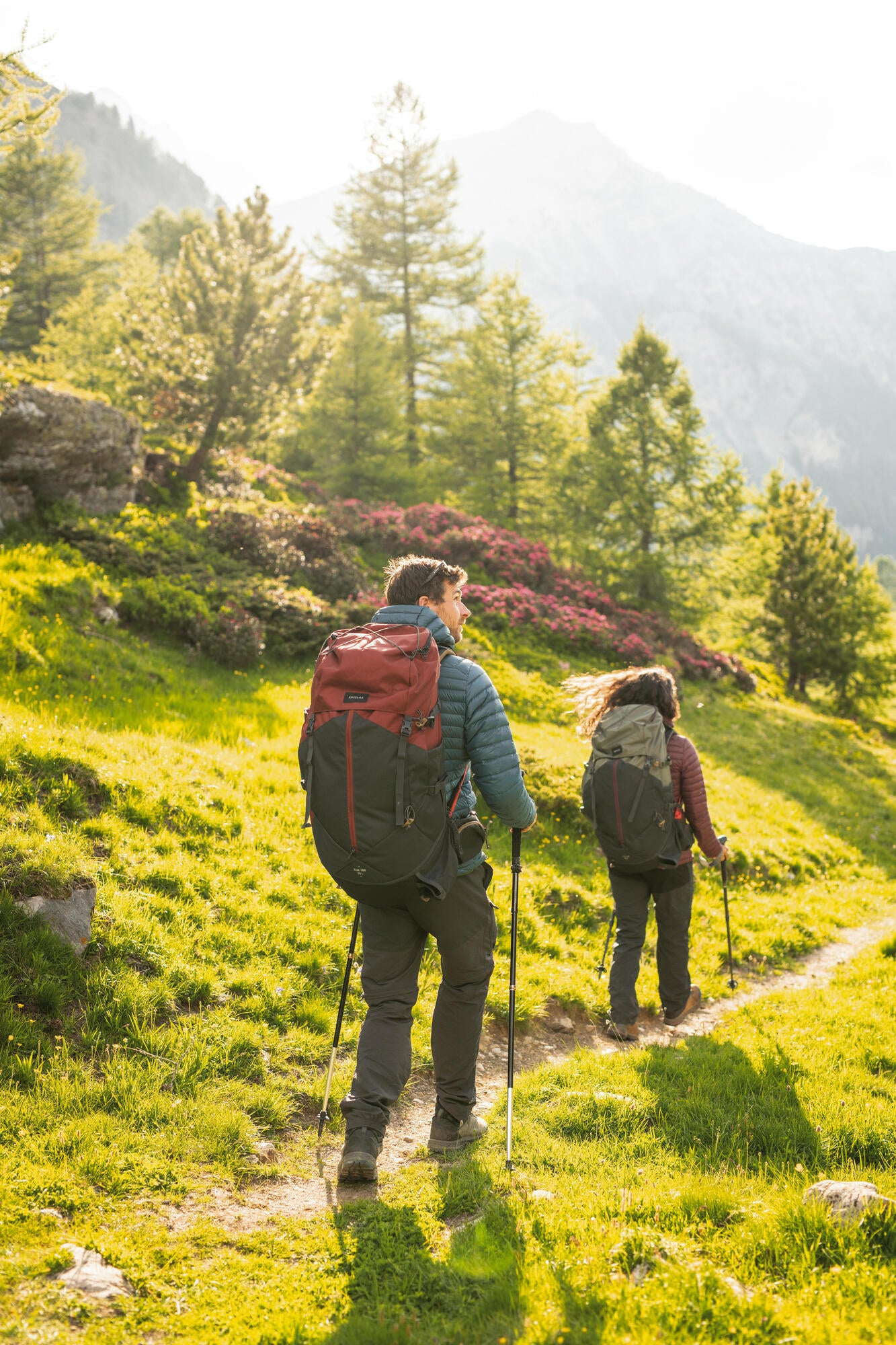 This backpack has the essential features if you are looking for a budget-friendly option: back ventilation. rain cover. water bottle holder. hiking poles holder. external pockets and a compartment for a water bladder for easy hydration.